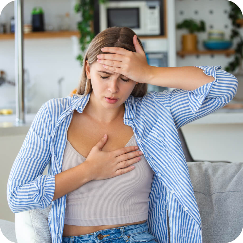 В течение последних 2 недель беспокоят постоянное чувство тревоги и напряжения, эмоциональная неустойчивость, учащенное сердцебиение, покалывание и дискомфорт в груди, чувство нехватки воздуха.