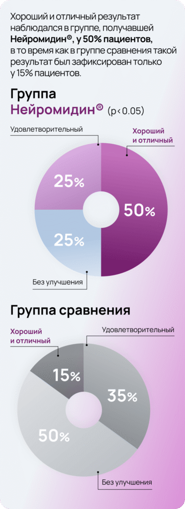 В исследовании Доценко и соавт. была обследована когорта из 92 пациентов с ХСН III–IV ФК. Группа, получавшая Адаптол® в дозе 500 мг 2 раза в день в течение месяца, продемонстрировала значимое снижение тревожности по шкале Шихана и улучшение долговременной памяти1.
