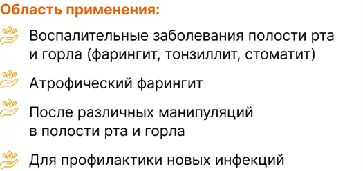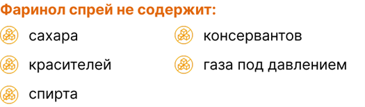 Фаринол спрей рекомендуют для ухода за полостью рта и горла, для уменьшения раздражения слизистой оболочки рта и горла после различных манипуляций или в случаях воспаления.