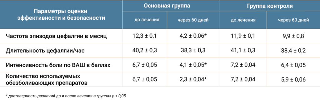 Достоверное улучшение качества жизни со снижением эпизодов цефалгий после проведённого курса лечения было выявлено у пациентов, принимающих фенибут.