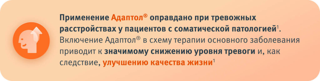 Крыжановский С.М. и др. Эффективность Адаптола в терапии тревожно-депрессивного синдрома у пациентов с соматической патологией: систематический анализ. Кремлевская медицина. Клинический вестник. 2023; 1:43–50.
